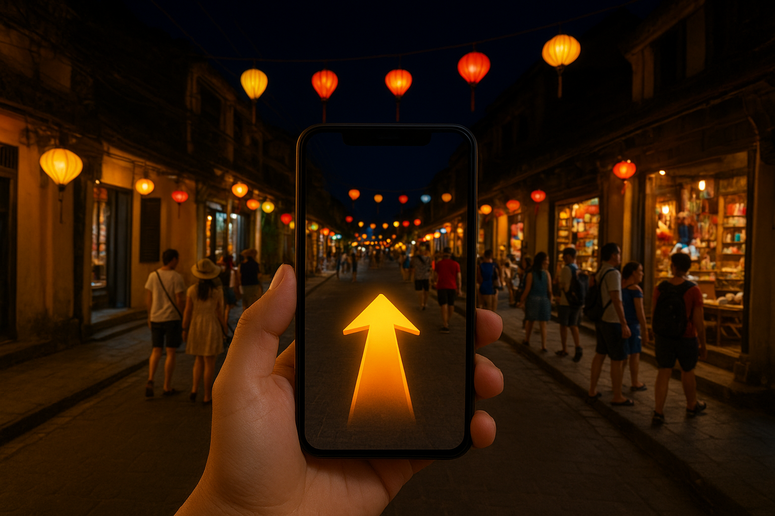 AR giúp du khách tìm đường dễ dàng hơn ở thành phố, khu du lịch. Chỉ cần giơ điện thoại lên, bạn sẽ thấy mũi tên chỉ hướng đi hiện ngay trên đường thật. Ở các khu đông người như lễ hội, sân bay hay công viên, AR cũng giúp bạn biết mình đang ở đâu, cần rẽ hướng nào mà không cần hỏi ai.